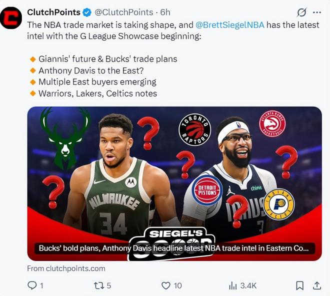 开拓者也能抢字母哥?美媒晒6换2交易方案:把克林根罗威都送走